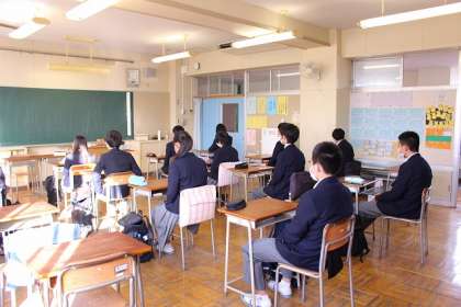 「校長先生のおじいさんは、掻い巻き布団の上にさらにもう一枚、綿の布団をかけて寝ていました。おじいさんと一緒にその布団に入ると、とても暖かいのです。一晩中は一緒に寝ませんでしたが、おじいさんの布団の中で体を温めてから、おやすみなさいをして、自分の布団で寝ていました。あのおじいさんの布団の温かさは、今でもよく覚えていますし、懐かしい思い出です。おじいさんが進めてくれたもう一つは『腹巻』です。掻い巻き布団と同じく、お腹を冷やしてはいけないということで、子どもの頃は、私にもさせていましたが、小学校に入り、体育の着替えの時には恥ずかしいよと言って、私はそれからは、腹巻をしていません。でも、大人になってから、お腹が痛かったときや、寒い地方に出張するときなど、大人用の腹巻は用意することがあります。用心のために、受験の前にも腹巻をして寝ていた記憶があります。皆さんも『着る、さらに着る』『如月』となった話から、自分なりの、体を冷やさない、温める工夫に取り組んでみてください。」