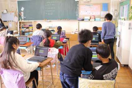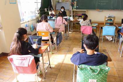 タブレット学習端末のタイピング学習です。メッセージを作成しています。