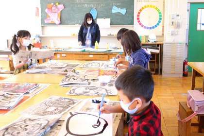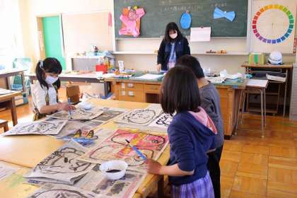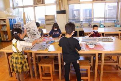 「あかおに・あおおに」お話に出てくる鬼を作っています。