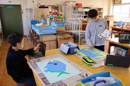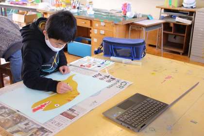自分の描いたデザインに合うように、綿棒で色付けをしていきます。