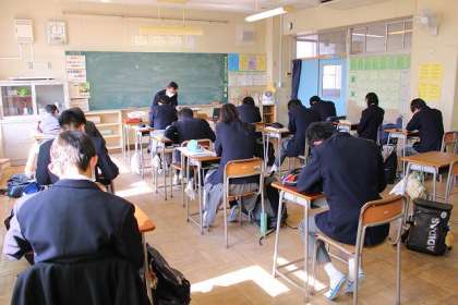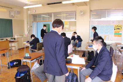 2つのクラスに分かれて、学年末考査に向けた問題を解いています。