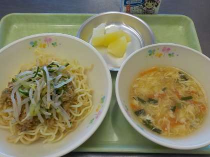今日の献立:ジャージャーめん、酸らーたん、山の幸添え