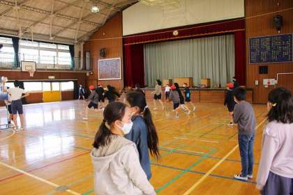 スポーツクラブの見学です。バスケットボールの試合中です。
