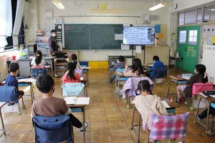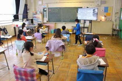 「おおい ほう すくない ほう」の学習です。大型モニターを使って・・