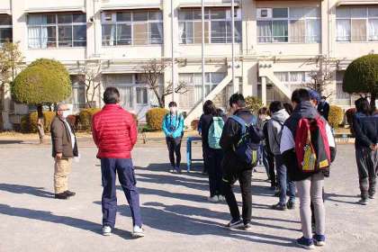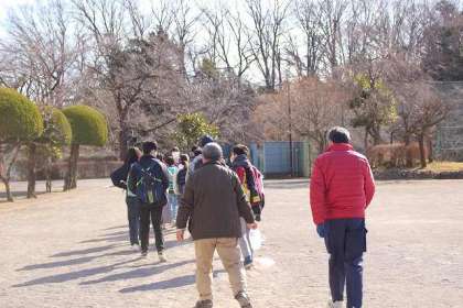 卒業プロジェクトの一つ「殿入り中央公園」に向けて出発です。地域の方2名のご協力ありがとうございます。