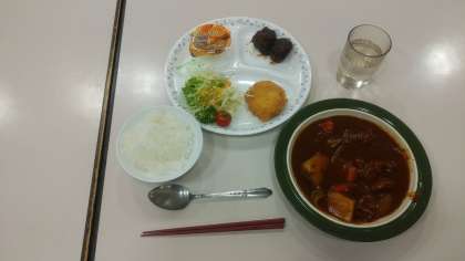 お風呂も入って、夕食です。ビーフシチューとご飯はおかわりができます。今日は絶対みんなお腹がすいているは