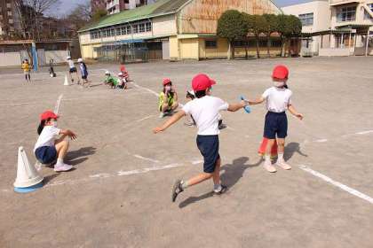 リレー遊びをしました。コーンリレーからみんなでリレーへ・・