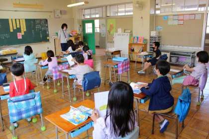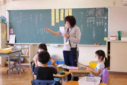 「ちいさい おおきい」これから、グループに分かれて、どんなふうに読もうか、表そうか話し合います。