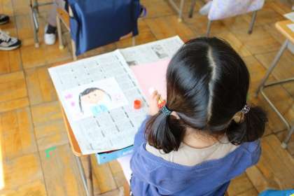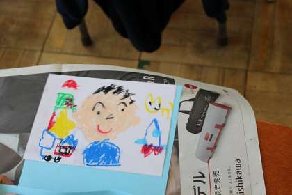 「お誕生日列車をつくろう」自分の顔を描きました。