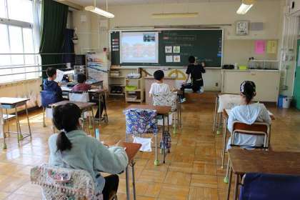 2つのクラスに分かれて「対称な図形」の学習をしています。