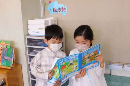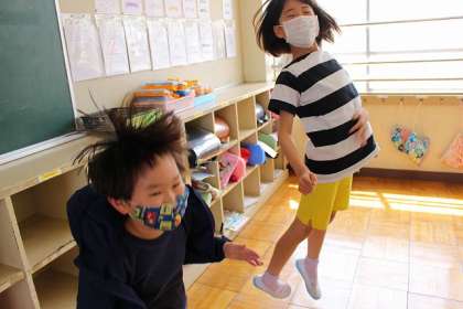 「ちいさい おおきい」発表会に向けてグループ練習です。動作も入れています。
