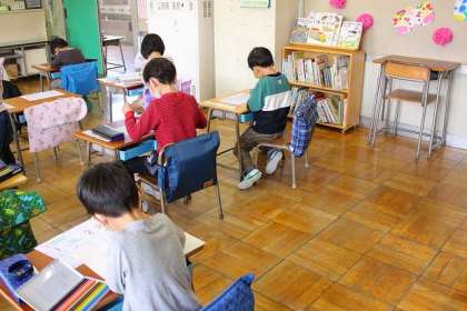 1年生の様子です。朝自習をしています。