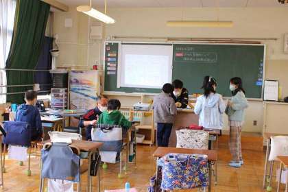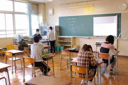 2つのクラスに分かれて「対称な図形」の学習をしています。