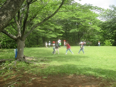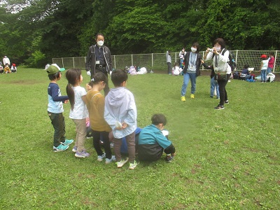 2年生は事前の学習を生かして、上手に1年生をリードしています。1年生は2年生のお話をよく聞いて、元気に遊んでいます。きれいな新緑をバックに、写真も撮りました。