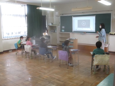 1枚目・・・3年生が英語でのあいさつを学んでいるところです。