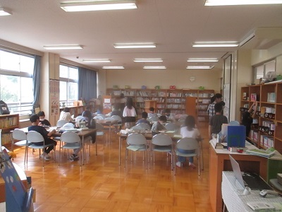 1枚目・・・5年生の図書の様子です。みんな真剣に本と向き合っています。