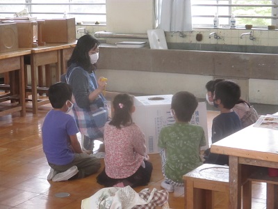 2枚目・・・図工で段ボールカッターを使って工作をするところです。