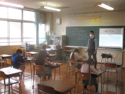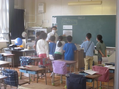 少人数算数で2グループに分かれて、折れ線グラフの学習をしています。