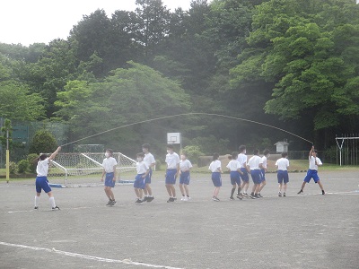 3枚目・・・体育で、運動会での種目にもなっている大繩に取り組んでいます。仲間同士で相談して、どうすれば回数が伸びるか試行錯誤しています。