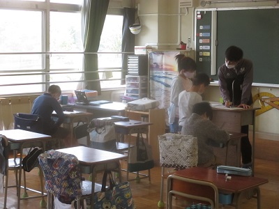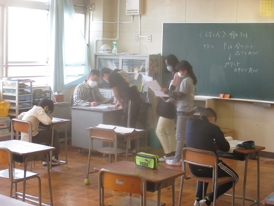 少人数の2グループに分かれて、「文字と式」の学習に取り組んでいます。