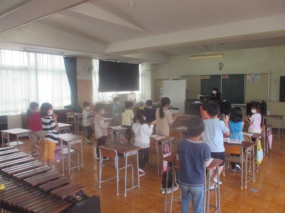 2・3枚目・・・音楽の3拍子の学習、手をたたいたり体を動かしたりしながら学んでいます。