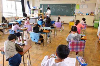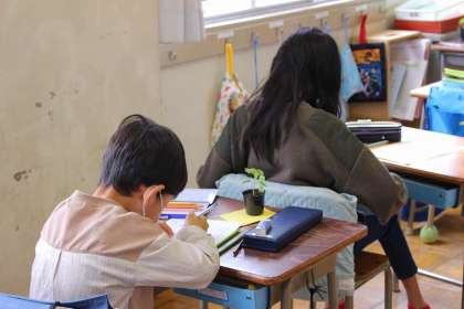 「野菜を育てよう」ミニトマトの苗の観察です。