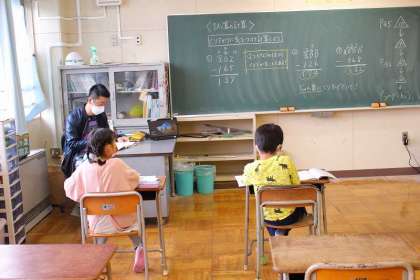 2つのクラスに分かれて「たし算とひき算のひっ算」の学習です。