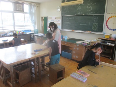 差し金を上手に使いながら、垂木に10センチごとに印をつけています。