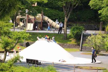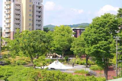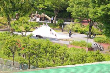 近くの公園で遊んでいます。本校舎の4階から撮影しました。