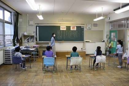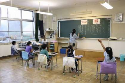 B-(9)友情、信頼(資料「いいち,にいっ,いいち,にいっ」)資料を読んで場面に登場する人物の気持ちを考えています。
