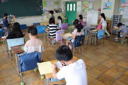 運動会に向けて・・お家の方へのメッセージを書いています。雨も上がり、天気が良くなってきました。