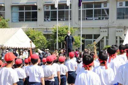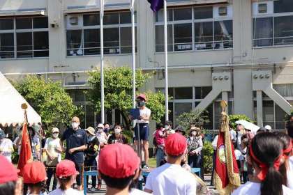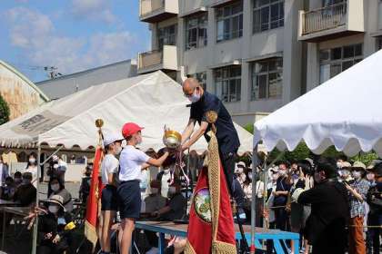 開会式です。開会の言葉、カップ返還、学校長挨拶です。