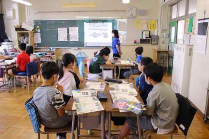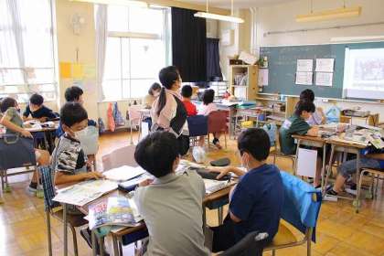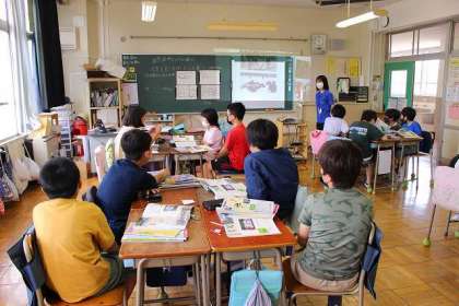 「自然条件と人々のくらし」写真を見て気付いたことを発表しています。