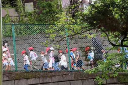 これから近くの公園に向かいます。「いってらっしゃい!」