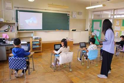 タブレット学習端末を使って写真・動画機能の使い方を練習しました。