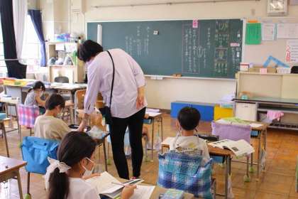 「すみれとあり」の説明文を読んで、おもしろいなと思ったことや、ありとすみれの関係について考えたことをプリントに書いています。