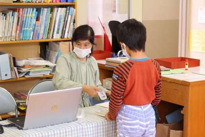 食育月間にちなんだ本も紹介されました。昨日は「お魚の骨をさがしたけど、なかったよ」との声。「いつもより魚を食べた学年がありましたよ。きっと、骨をさがしたからでしょうね。」(調理員さんの声)