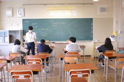2つのクラスに分かれて、期末考査に向けて学習を進めています。