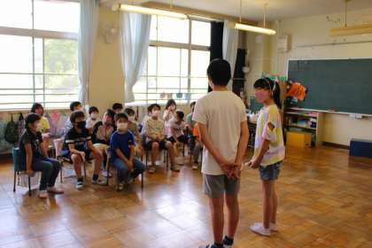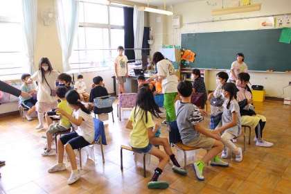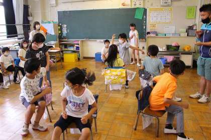 1班は1年教室です。「いすとりゲーム」をして楽しみました。