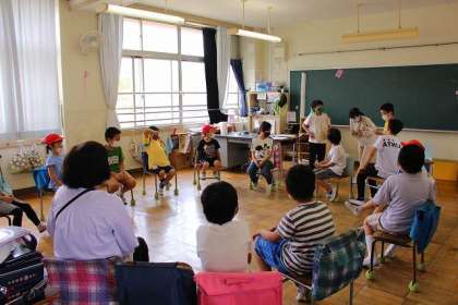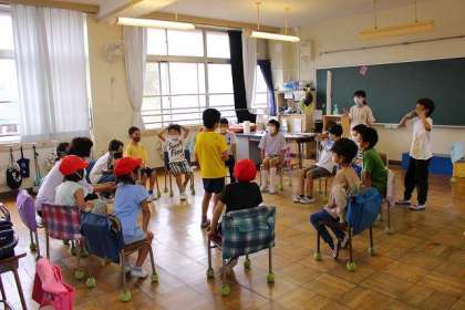 2班は2年教室です。「なんでもバスケット」「ドーン!じゃんけん」を楽しみました。
