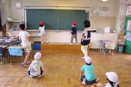3班は3年教室、「一文字リレー」「宝さがし」を楽しみました。