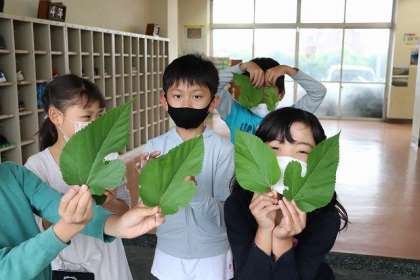 「カイコを育てよう」桑の葉を取りに行きました。