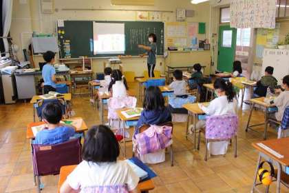 「すずめの くらし」教科書の写真から気づいたことを発表しています。