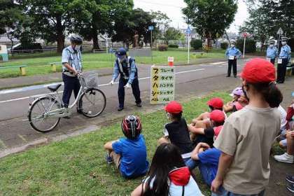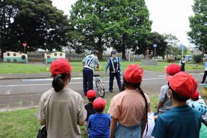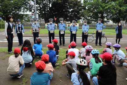 自転車安全教室がスタートしました。高尾警察署・高尾交通安全協会の代表の方・市職員の方にお世話になります。よろしくお願いします。安全な自転車の乗り方を教えていただきました。