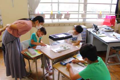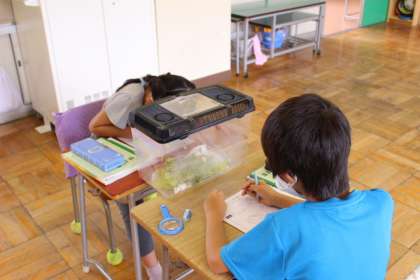 「チョウを育てよう」体のつくりに注目してモンシロチョウの成虫を観察しています。