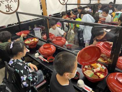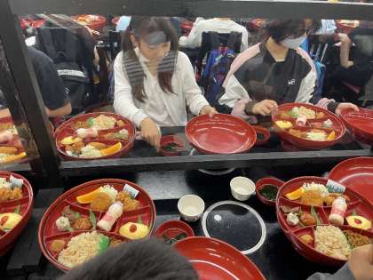 バスの中から「お腹すいた〜」の大合唱でした。さぁ、いただきます!