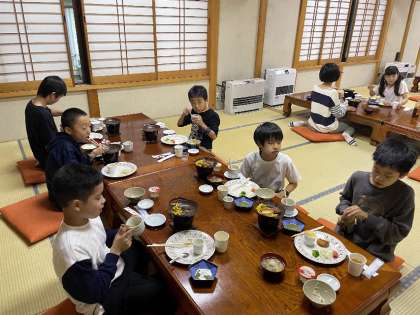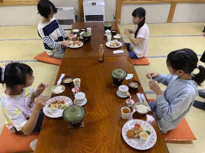お待ちかね、宿の夕食の時間です。温かく、とっても美味しくいただきました。