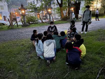 ナイトハイクが始まります。杉原先生が昔、とても怖い体験をしたことがあるらしいです‥
