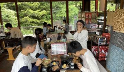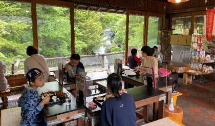 たくさん歩いて足がガクガク。竜頭の滝を観ながらお昼をとります。