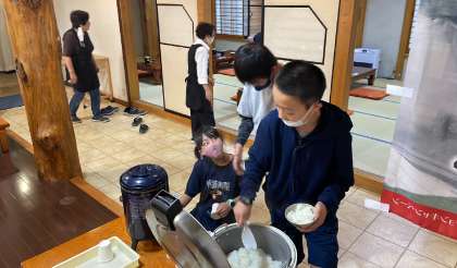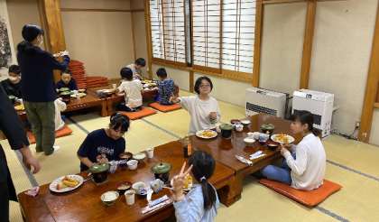 10分前に、食事当番が準備を始めます。手際がいいのであっというまに完了。いただきます!